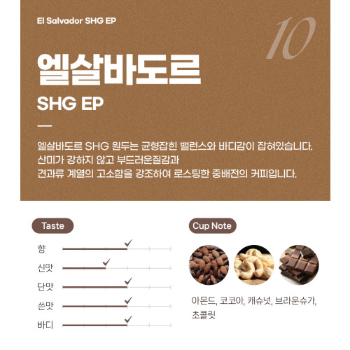 산미가 강하지 않고 부드러운 질감과 견과류의 고소함이 매력적인 중배전 커피입니다.
